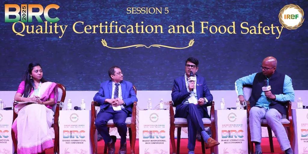 The Day 2 of the BIRC event continues with the last four sessions that again focus on rice exports, rice production, and rice agriculture. The fifth session had the title Quality Certification and Food Safety norms. Pratik Parija from Bloomberg had initiated the conversation. Whereas Mr. Soumik Mondal, from SGS, highlighted digital tags for traceable supply lines. Dr. Priyanka Sarkar, the project manager from Schemes Quality Council of India (QCI), indicated gaps in small mill setups, whereas Tarun Bajaj, Director, BEDF at APEDA, concluded the plans for farmer training on hazard analysis.