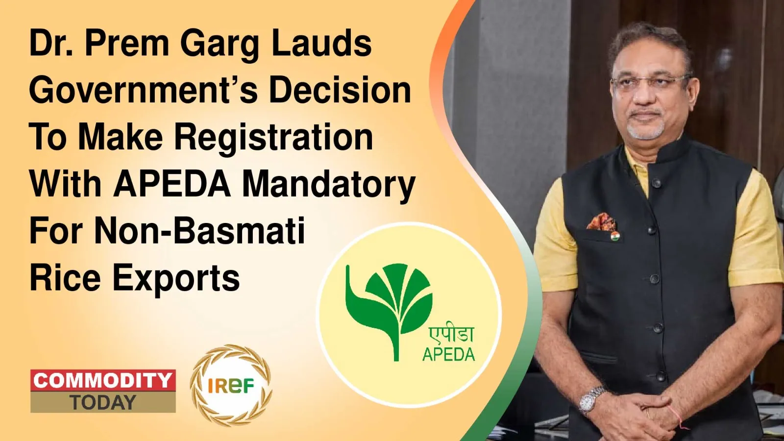 Dr. Prem Garg, National President of IREF, participated in the demonstration meeting of the APEDA Non-Basmati Rice Software (RCAC) and welcomed the recent decision by the government. Applauding the government's initiative, Dr. Garg stated that the move would bring transparency and uniformity to the export policy and trade.